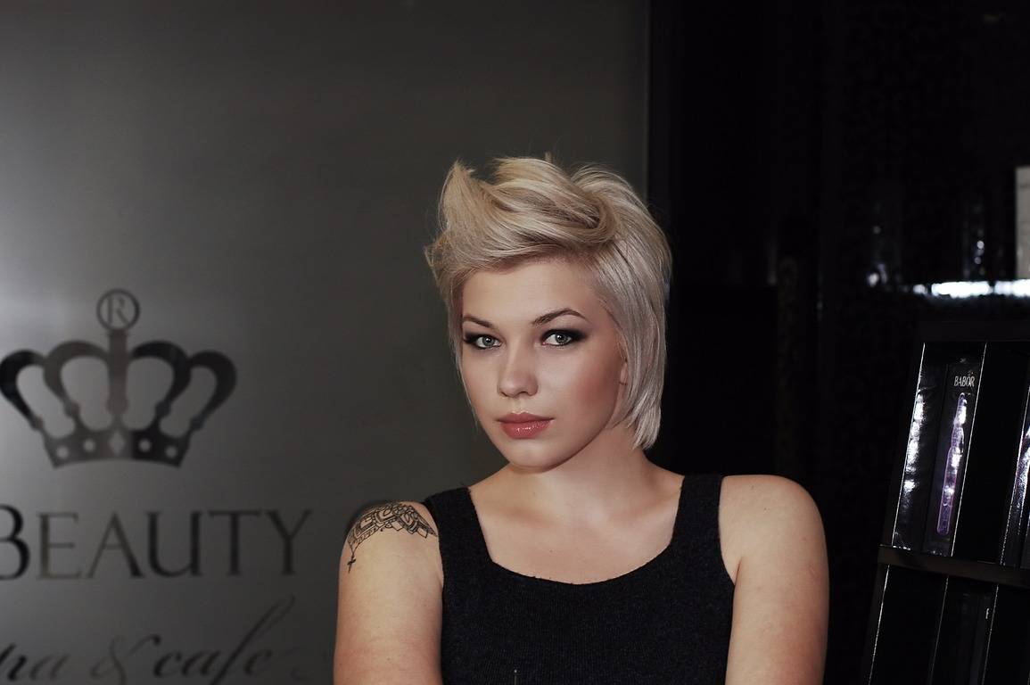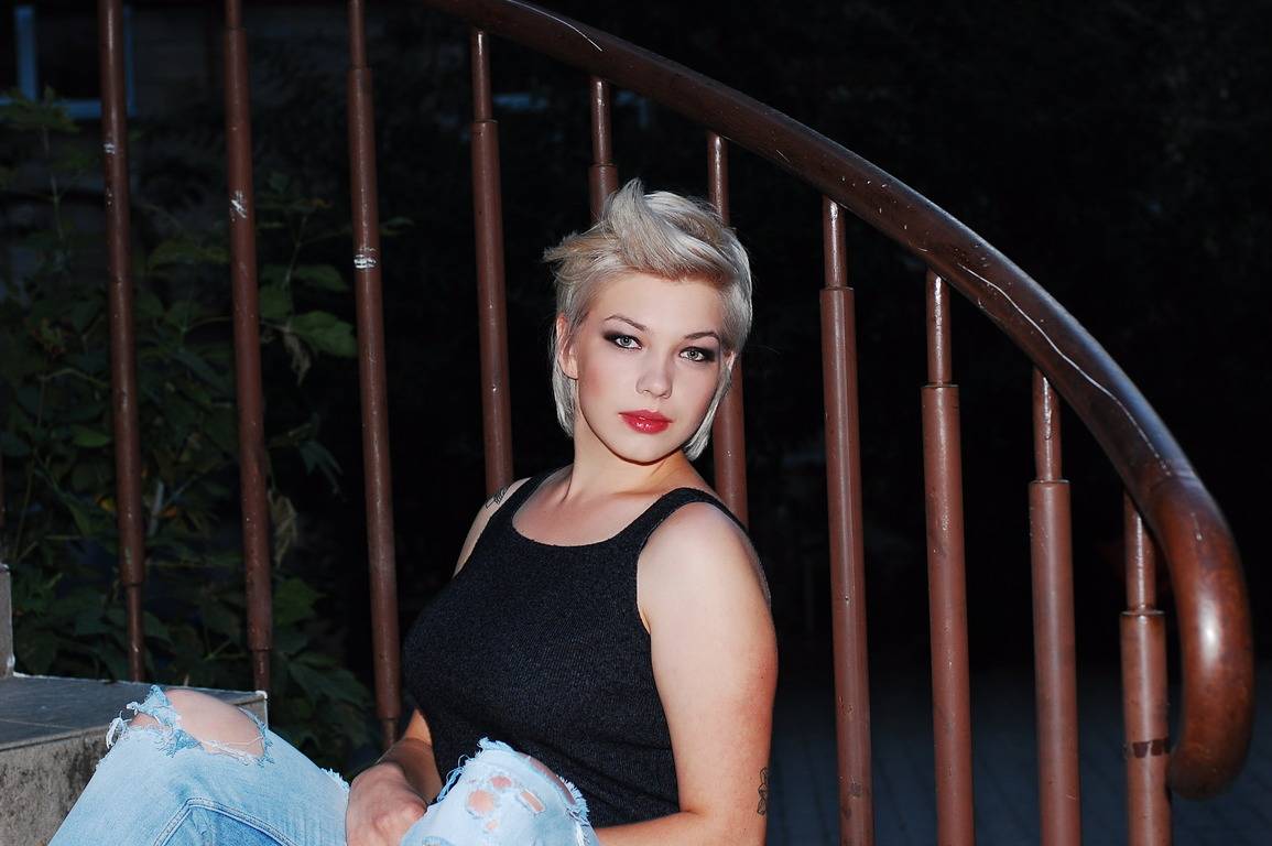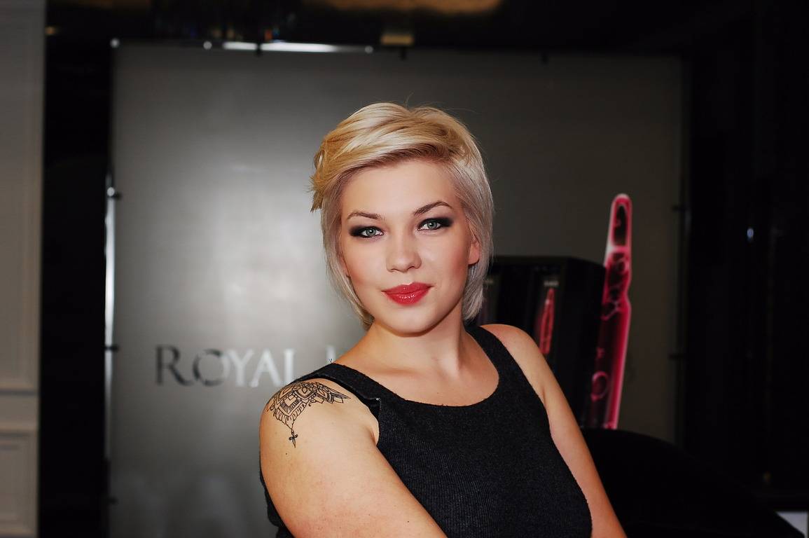I suggested dying the hair even lighter in order to make the color more contrast and bright, with a cold shade, and it turned out that Anya had wanted to dye her hair that way for a long time but did not go for that broke because of the hair health, but with innovative means of hair care everything is possible now.Then we made a contrast haircut with an elongated upper and lower zone, flat temporal zones, which allows for a variety of modeling, and makeup is also quite bright, because the work takes place in the evening and suggests a good mood.